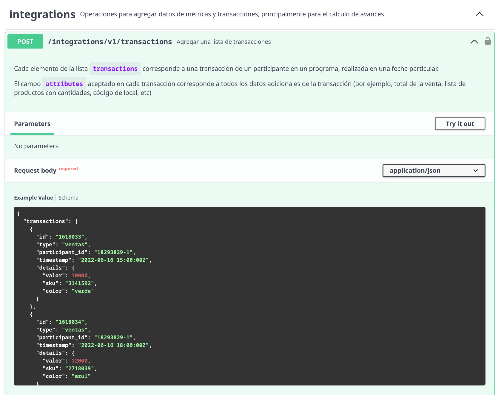 La API SAWA está documentada para todos sus schemas de requests y responses y tiene interfaces para ser probada antes de usarlas con datos reales. En su sandbox se puede ver la documentación