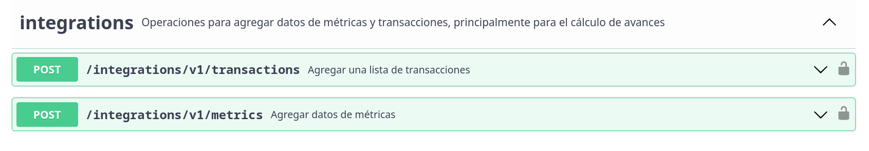 - metrics: datos agregados de todos los participantes. Por ejemplo: ventas totales a la fecha o ventas mensuales de un determinado producto